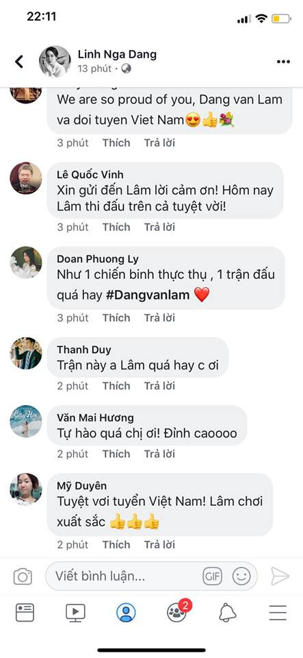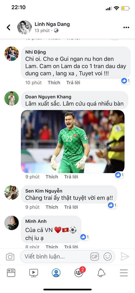 TPO - Diễn viên múa Linh Nga nhắn nhủ tới em họ - thủ thành Đặng Văn Lâm: "Tình yêu của cả nhà" trong khi Hoa hậu Đặng Thu Thảo tán thưởng: "Em Lâm quá giỏi chị ạ, thật xuất sắc hôm nay".