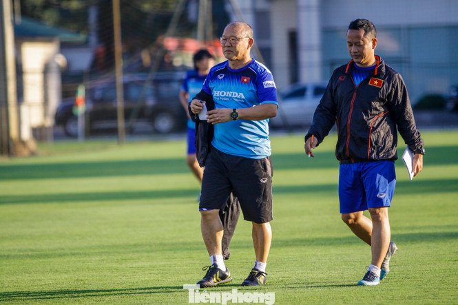 HLV Park Hang Seo chỉ đạo các học trò tại ĐTQG, sau đó sang "thăm nom" tuyển U22 Việt Nam.