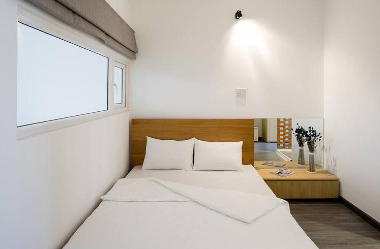 Phòng ngủ sạch sẽ với thiết kế đơn giản, gọn gàng.