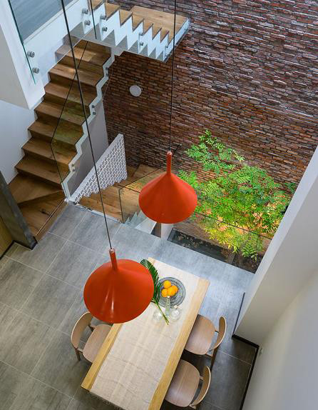 Nhờ giếng trời lớn cung cấp đầy đủ ánh sáng để cây phát triển, tạo không gian xanh thú vị cho ngôi nhà.