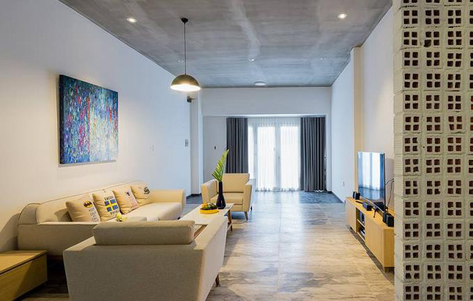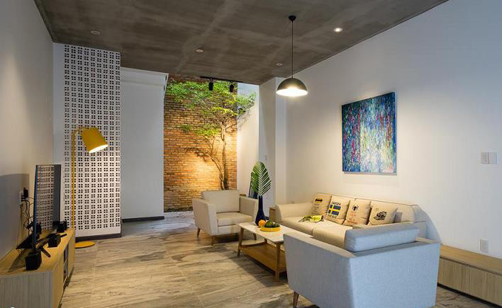 Phòng khách ngay tầng trệt với thiết kế đơn giản.