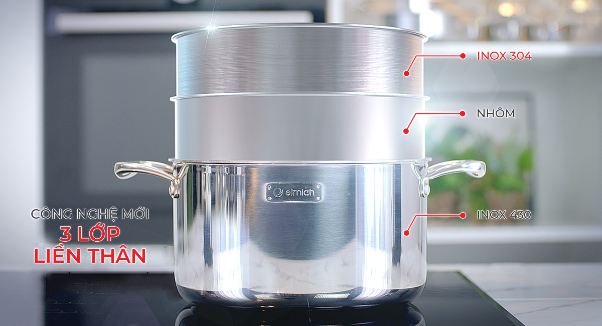 Một bộ sản phẩm nồi chảo mà gần đây các chị em truyền tai nhau tin chọn đó là Trimax, sản phẩm của thương hiệu đồ gia dụng cao cấp Châu Âu Elmich. Đặc điểm nổi bật của sản phẩm này chúng là công nghệ đáy liền 3 lớp siêu bền, bắt nhiệt nhanh, tỏa nhiệt đều, giữ nhiệt lâu. Nhiệt được truyền đều từ đáy lên thành nồi, đồ ăn được chín đều từ đáy đến xung quanh, tiết kiệm nhiên liệu tối đa. Hiệu suất bắt từ lên tới 98% giúp tiết kiệm tối đa điện năng cũng như thời gian nấu.