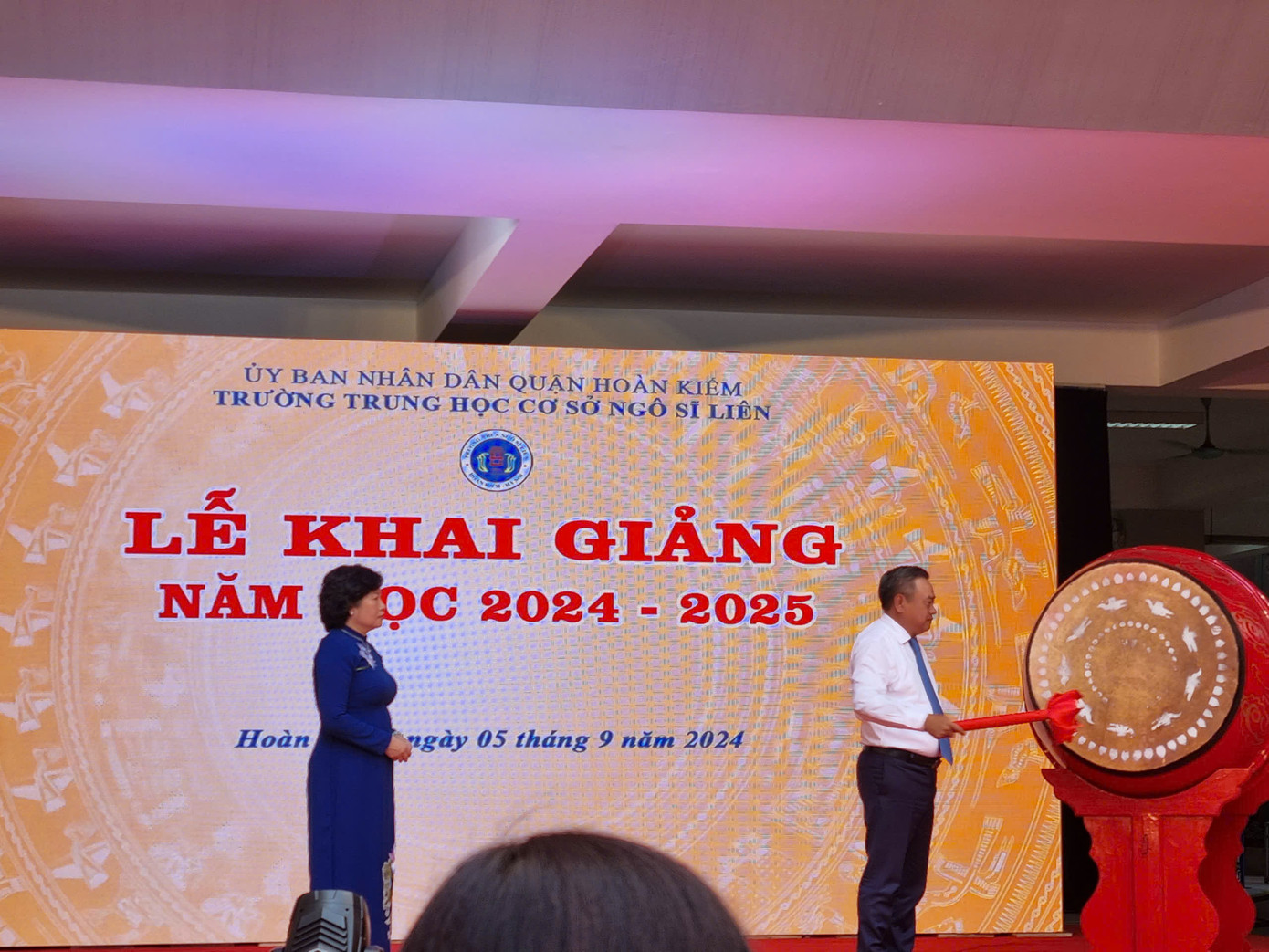 Đặc biệt, lễ khai giảng năm học 2024 - 2025 của trường THCS Ngô Sĩ Liên có bác Trần Sỹ Thanh - Ủy viên Ban chấp hành Trung ương Đảng, Phó Bí thư Thành ủy, Chủ tịch UBND Thành phố Hà Nội tới dự.