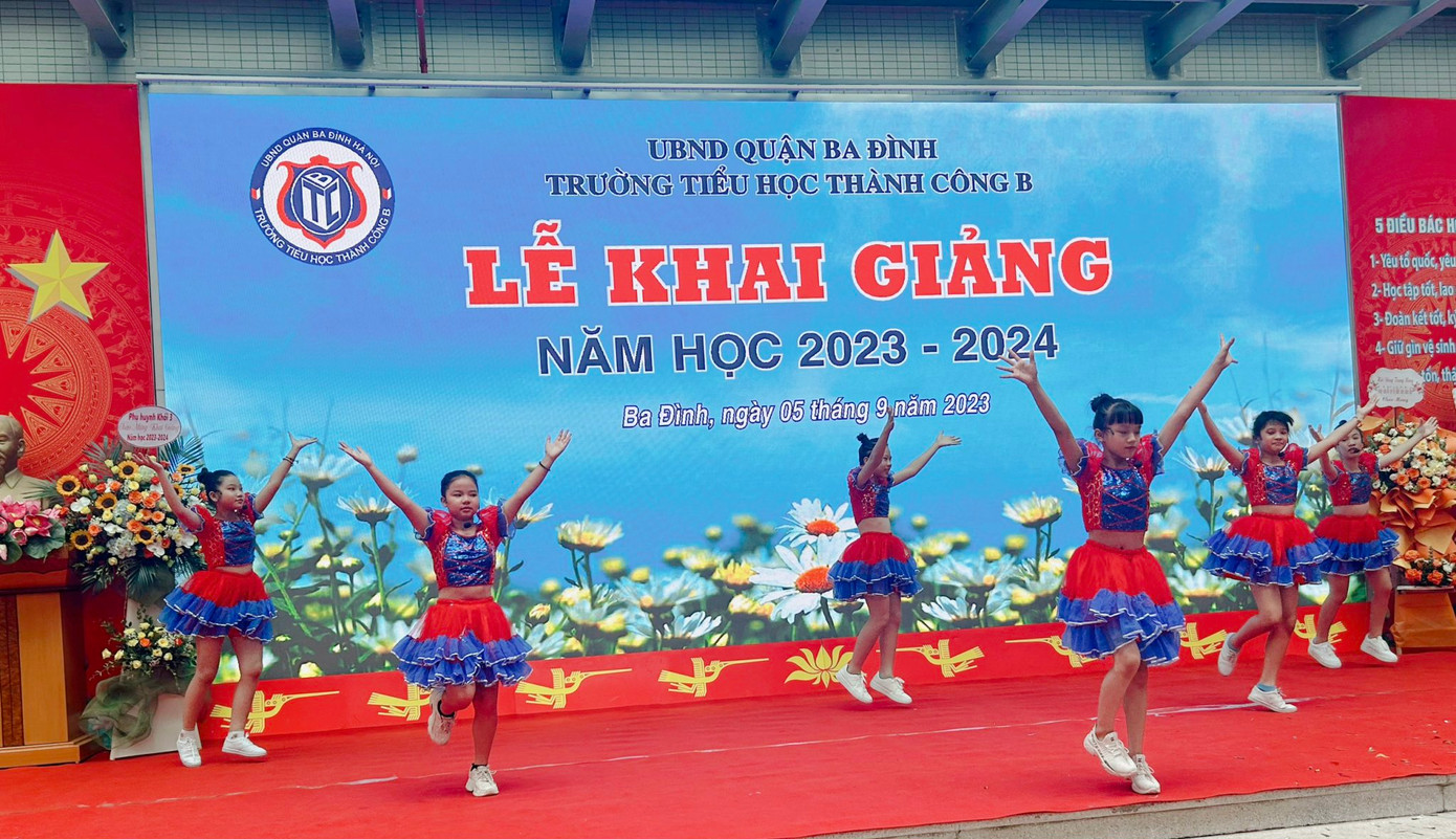 Tiếng trống khai trường như lời thúc giục, thể hiện sự quyết tâm, cố gắng của thầy cô và trò trường Tiểu học Thành Công B trong năm học mới này.