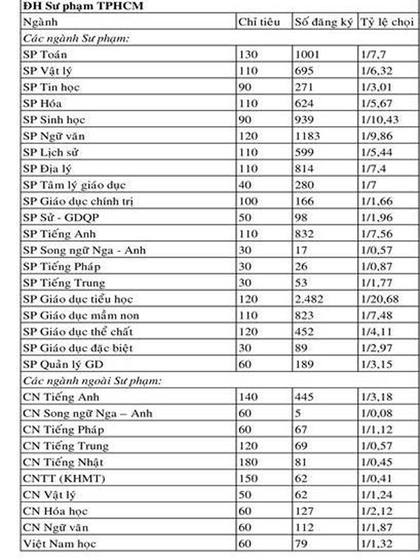 Nhiều ngành ngoài sư phạm của trường cũng có tỉ lệ “chọi” dưới 1: Song ngữ Nga- Anh chỉ tiêu 60 thì chỉ có năm hồ sơ đăng ký dự thi.