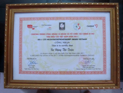 Năm 2011, với những nỗ lực không ngừng của bản thân, chị Đặng Thị Triệu đã vinh dự được nhận danh hiệu Doanh nhân vi mô tiêu biểu của Việt Nam do Tổ chức Tài chính vi mô Việt Nam trao tặng.