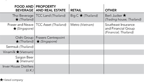 Tập đoàn TCC Group hiện sở hữu hãng sản xuất đồ uống Oishi Group, chuỗi siêu thị Big C, Berli Jucker - công ty thương mại hơn 130 năm tuổi… Trong khu vực, TCC Group cũng điều hành Fraser and Neave (F&N) – hãng đồ uống ở Singapore.