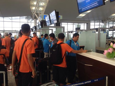 Sau khi đến sây bay, đội tuyển U23 Việt Nam nhanh chóng làm thủ tục xuất cảnh. Ảnh: Vĩnh Xuân