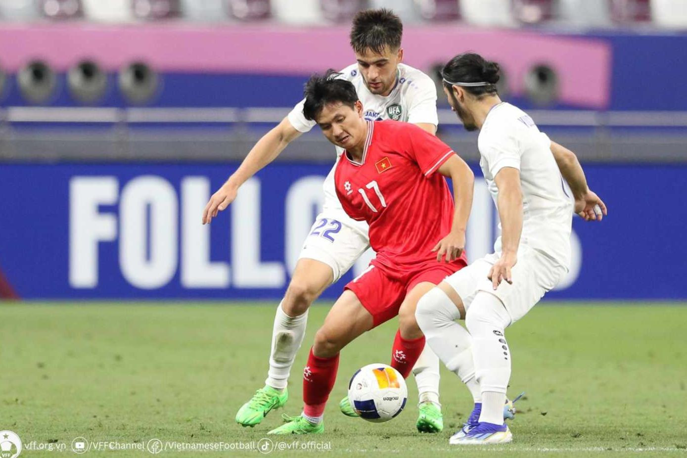 | Trước đối thủ mạnh, U23 Việt Nam thực sự khó khăn trong việc lên bóng và tạo ra cơ hội. Chúng ta chỉ cầm bóng 32% và có 2 cú sút trúng đích (nhưng không gây ra nhiều vấn đề cho thủ môn U23 Uzbekistan). |