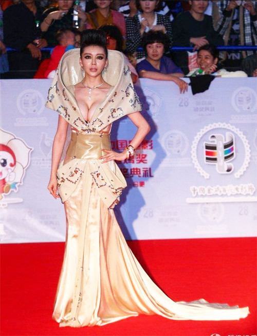 Ngay khi "Võ Tắc Thiên" đẹp nhất trên màn bạc Trung Hoa xuất hiện trên thảm đỏ, mọi ống kính đã phải đổ dồn về những bước chân của cô. Diện một bộ đầm dạ hội trắng muốt với phần ngực được cắt cúp khéo léo và đính đá lấp lánh, mọi ánh mắt tò mò dường như đều ngạc nhiên với nhan sắc quên tuổi của nữ minh tinh.
