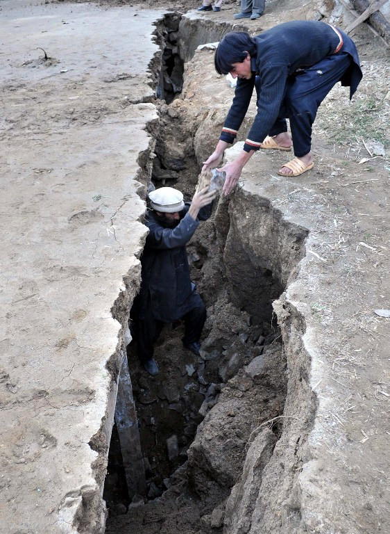 Cầu nguyện cho người thân xấu số trong vụ động đất ở huyện Behsud, tỉnh Nangarhar, Afghanistan