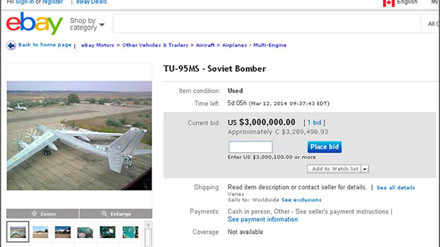 Bất kỳ ai cũng có thể mua chiếc máy bay ném bom đủ sức mang vũ khí hạt nhân với giá 3 triệu USD. Trên eBay công bố về lô hàng này cho biết rằng, máy bay được chế tạo năm 1987 và duy trì tốt vì số giờ bay chưa nhiều (tổng cộng 454 giờ). Tuy nhiên, bản tin rao bán cũng nhấn mạnh nhưng nếu thiếu chuẩn bị sơ bộ thì nó không thể cất cánh.
