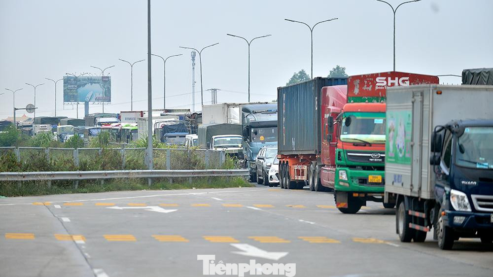 | Cảnh xe cộ ùn ứ tại Trạm thu phí Pháp Vân - Cầu Giẽ vào trưa ngày (20/7). |