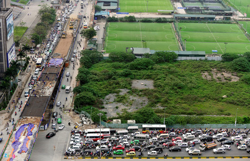 Đoạn đường Phạm Hùng, phía trước cổng bến xe Mỹ Đình cũng lâm vào cảnh tương tự.
