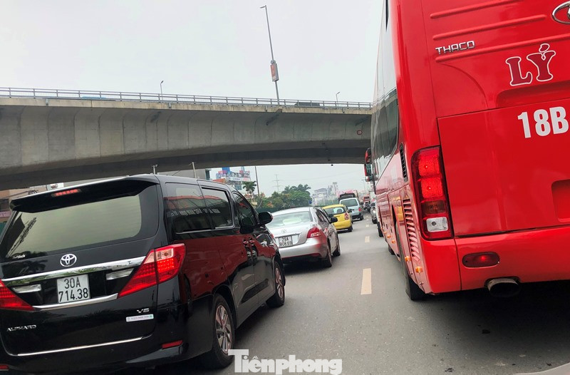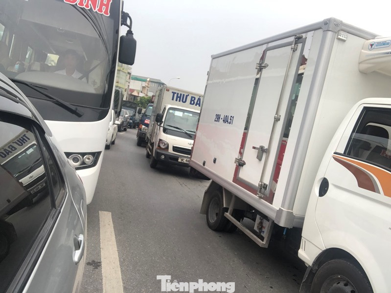 Từ 10h sáng nay trở đi, nhiều đoạn đường đê An Dương phương tiện ô tô xếp thành các hàng dài vì ùn tắc .