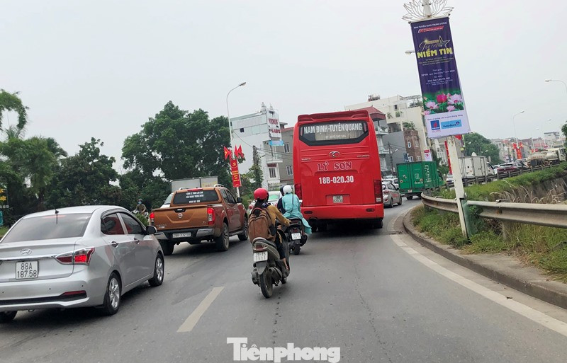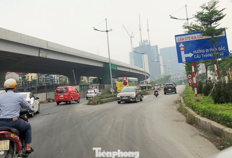 Tuy nhiên nhiều phương tiện trong đó có ô tô khách vẫn vi phạm biển báo hướng dẫn, đi sâu vào đường dẫn cầu Thăng Long.