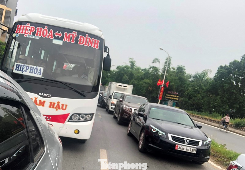 Đầu cầu Thăng Long phía nội thành, do có nhiều xe đi vào nên CSGT phải ra chặn đầu và buộc quay rẽ sang tuyến đường đê An Dương. Việc này đã làm đê An Dương sáng nay phương tiện tăng đột biến, ùn tắc kéo dài.