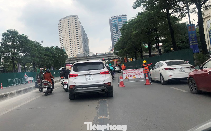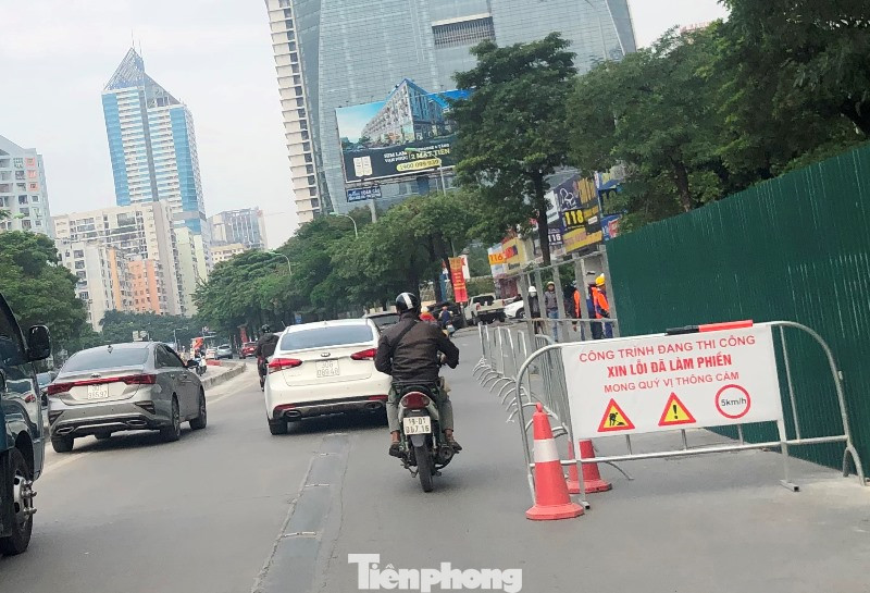 Diện tích được các đơn vị thi công dựng rào chiếm gần 1/2 lòng đường dành cho giao thông hỗn hợp.