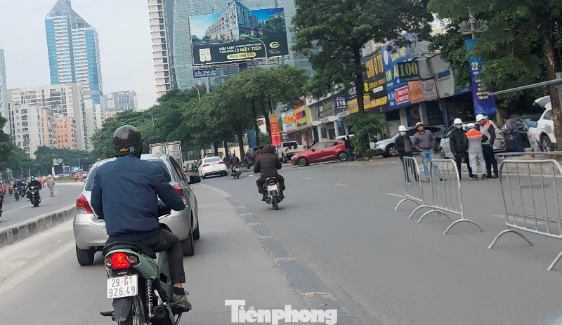 Đường Lê Văn Lương là trục giao thông cửa ngõ hướng tâm nên hàng ngày có đông phương tiện đi lại, trước khi dựng hàng rào đơn vị thi công phải dựng barie thử để đánh giá ùn tắc.