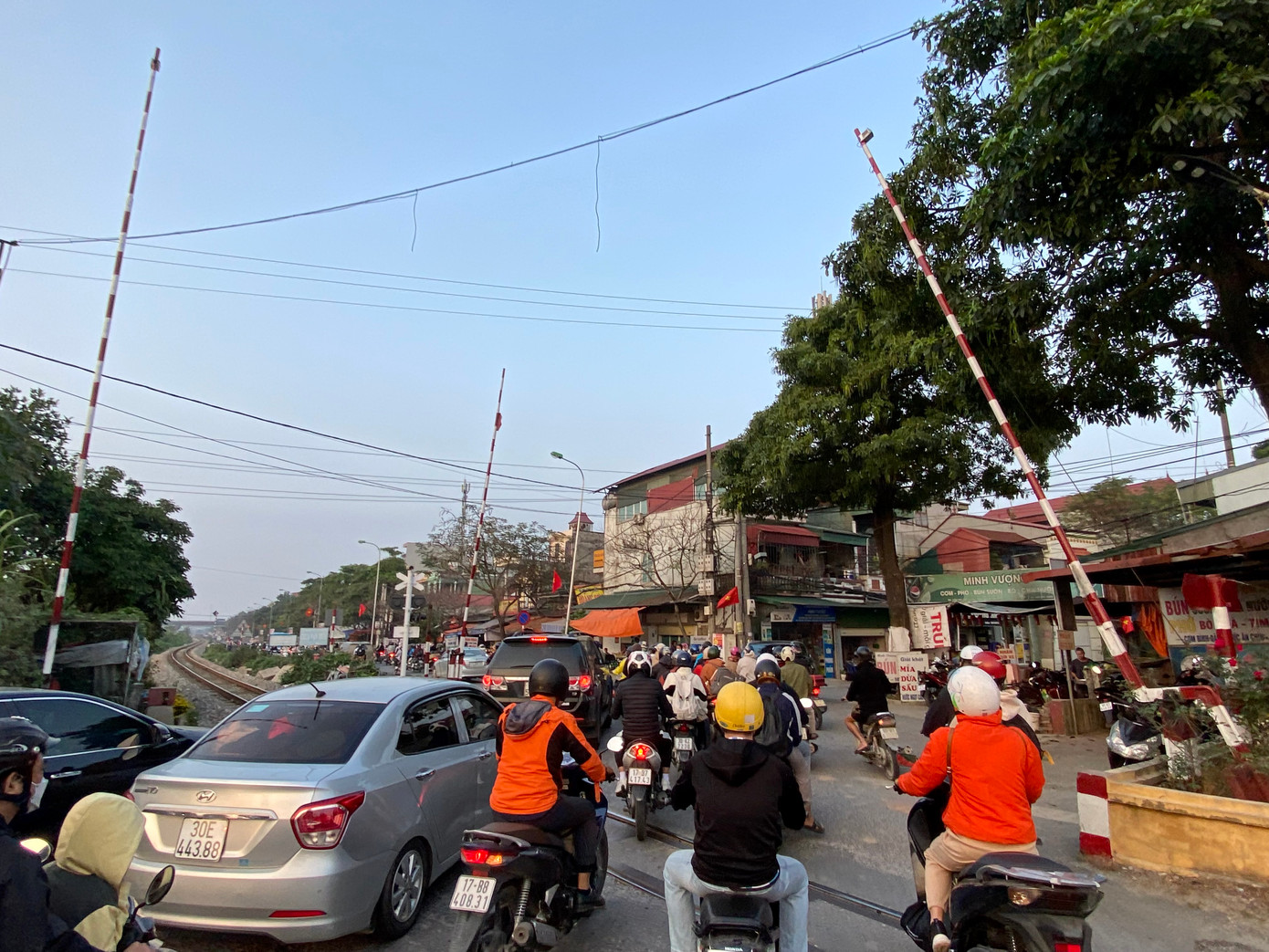 | Tại điểm giao Cầu Giẽ với quốc lộ 1A nhận một lượng lớn phương tiện đổ về chiều 1/1. |