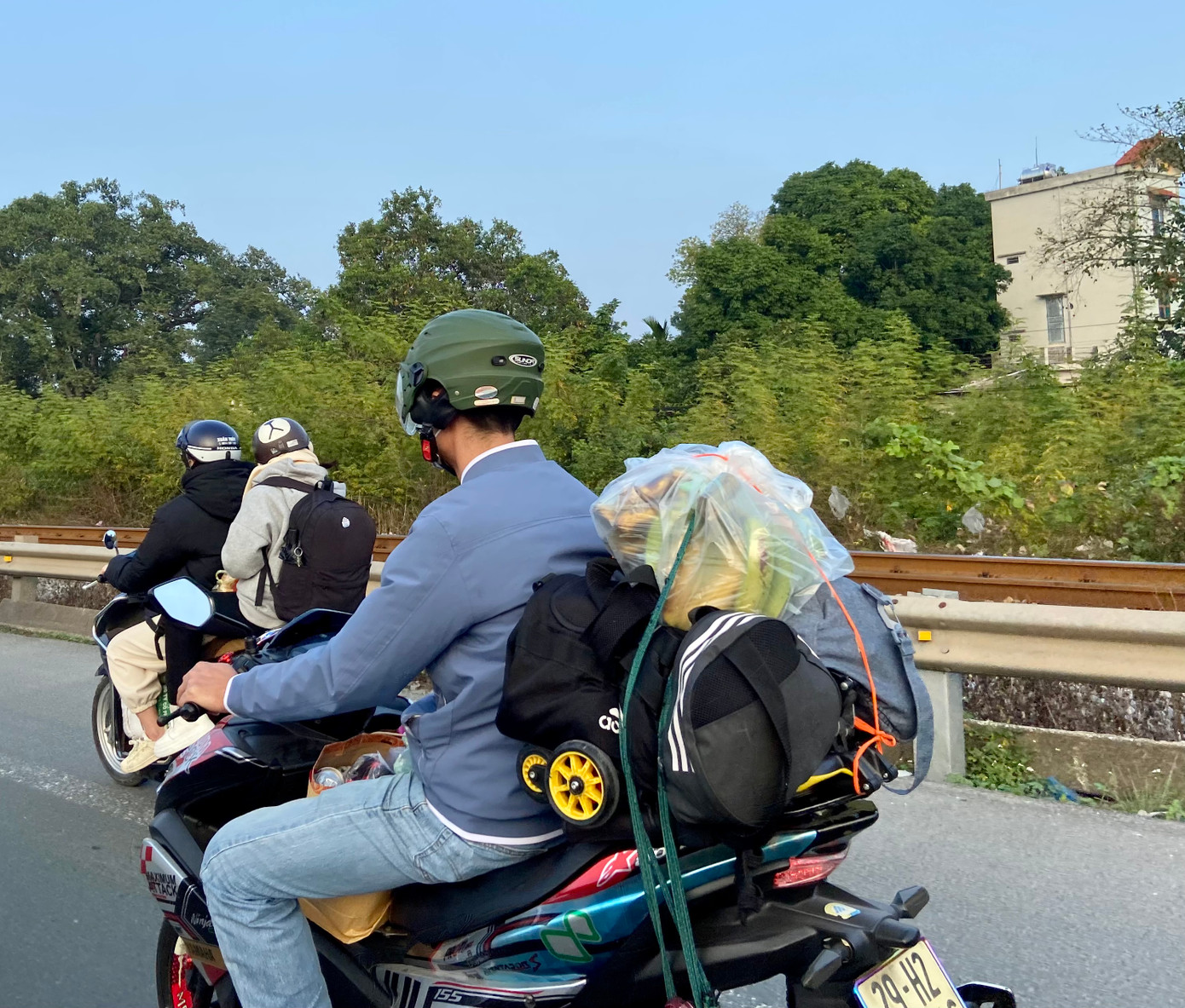 | Nhiều gia đình lựa chọn đi xe máy "cho tiện". |