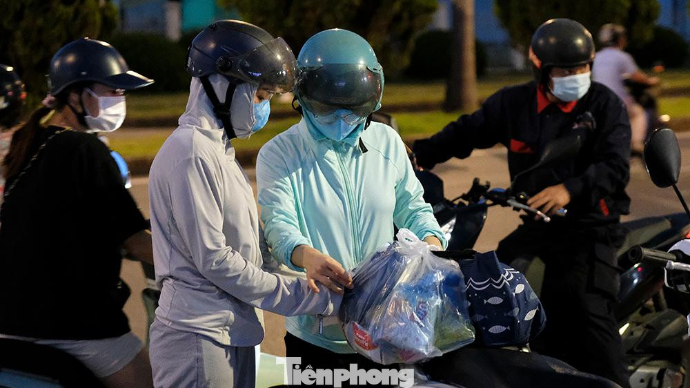 | Chiều tối ngày 6/7, rất đông người đã có mặt tại cổng Công ty SEI khu Công nghiệp Thăng Long, huyện Đông Anh, Hà Nội để tiếp tế cho người thân là công nhân tại khu công nghiệp này. |