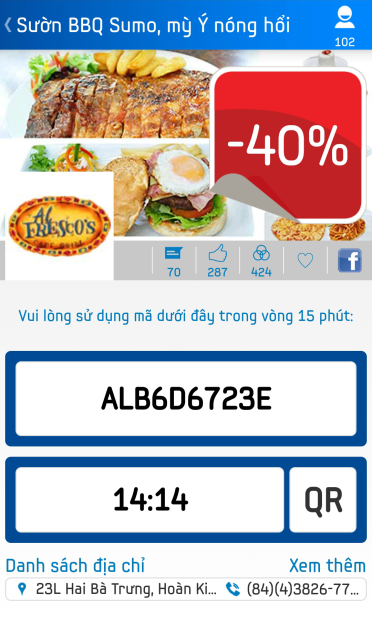 Bước 3:Nếu người dùng hài lòng với một sản phẩm, ngay trước khi thanh toán hóa đơn mua sản phẩm hoặc dịch vụ, người dùng chỉ cần bấm vào tùy chọn “Lấy mã ưu đãi” (Get gift code) để nhận mã ưu đãivà xuất trình mã codehiện trên máy Samsung với nhân viên hãng cung cấp dịch vụ là có thể nhận được ưu đãi ngay.