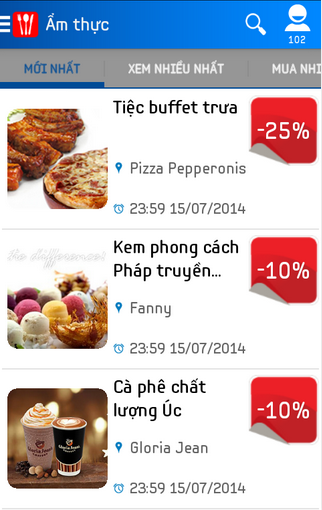 Bước 2:Lựa chọn nhóm danh mục ưu đãi