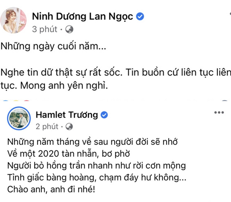 Nhật Kim Anh, Quách Tuấn Du là những nghệ sĩ đầu tiên chia sẻ thông tin về cố nghệ sĩ.