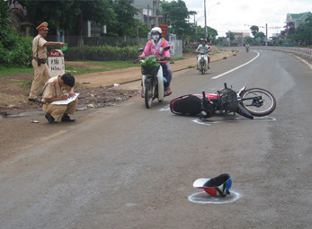 Tổ công tác ra tín hiệu yêu cầu chiếc xe máy dừng lại để kiểm tra. Bất chấp hiệu lệnh, lái xe đã rồ ga phóng thẳng về phía trước. Do chạy với tốc độ cao không kịp xử lý nên tông vào xe mô tô của CSGT.
