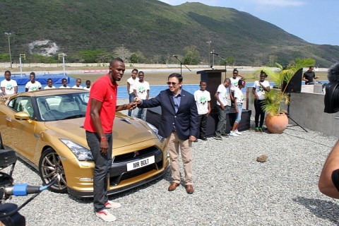 TPO – Vận động viên ‘tia chớp’ Usain Bolt rất phấn khích khi nhận được chiếc xế hộp thể thao Nissan GT-R độc đáo duy nhất mang biểu tượng tia chớp.