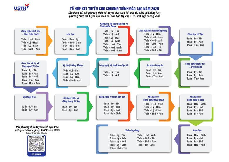 Năm 2025, USTH tổ chức 03 đợt thi đánh giá năng lực: 02 đợt trước kỳ thi tốt nghiệp THPT (tháng 3, tháng 5) và 01 đợt sau kỳ thi tốt nghiệp THPT (tháng 7). Bài thi kiến thức là một trong hai nội dung quan trọng trong Kỳ thi Đánh giá năng lực được tổ chức nhằm phục vụ công tác tuyển sinh đại học chính quy của Trường.