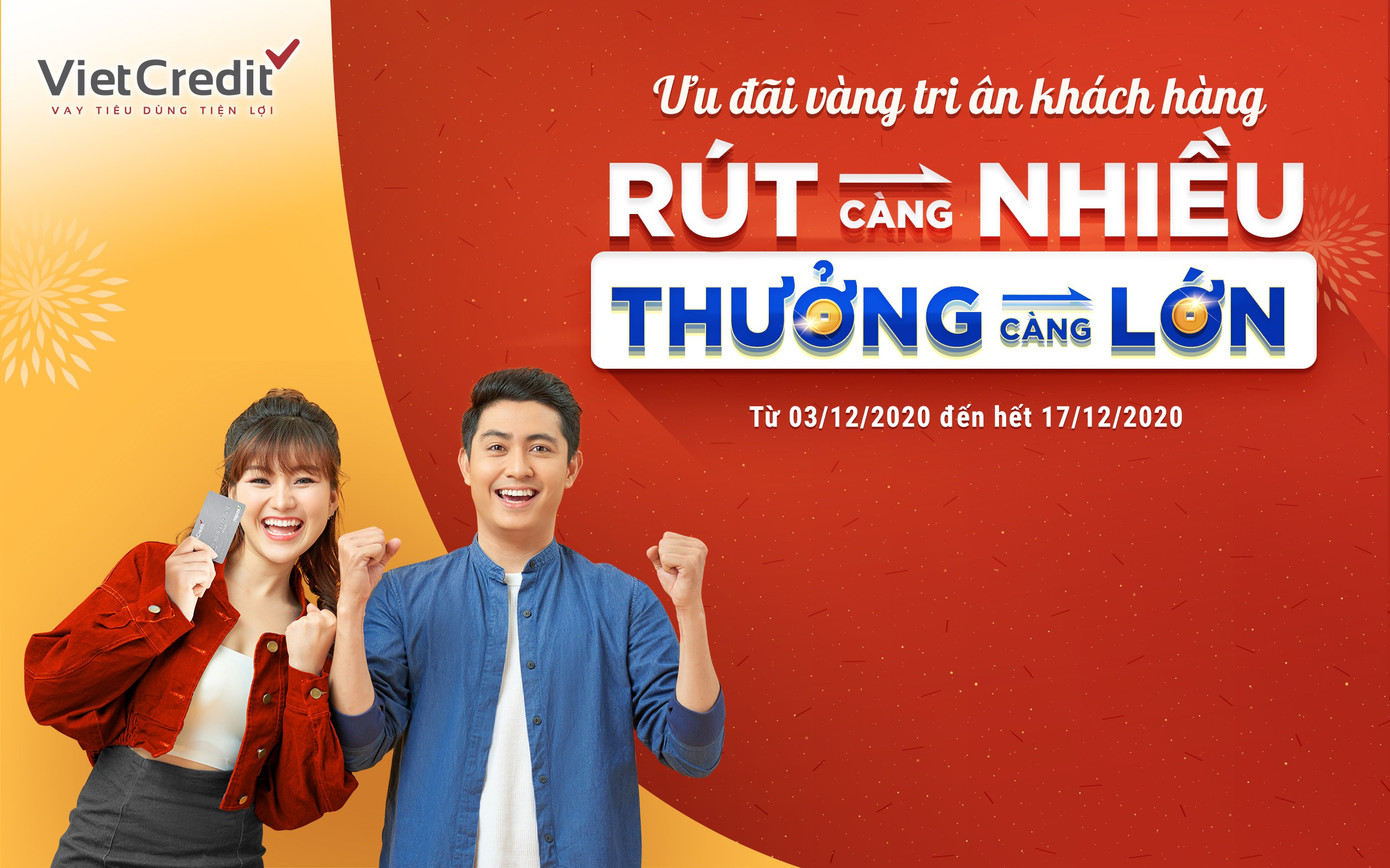 Mùa lễ hội cuối năm đang đến gần cũng là lúc người dân bắt đầu chuẩn bị đi mua sắm, giải trí, vui chơi để đón chào một năm mới sắp đến và tự thưởng cho công sức nỗ lực của bản thân suốt một năm qua. Nắm bắt nhu cầu tiêu dùng tăng cao và nhằm tri ân các khách hàng thân thiết hiện hữu, VietCredit mang đến chương trình “Ưu đãi vàng tri ân khách hàng: Rút càng nhiều, thưởng càng lớn” trên toàn quốc với tổng tiền thưởng dịp này lên đến hơn 1,5 tỷ đồng.