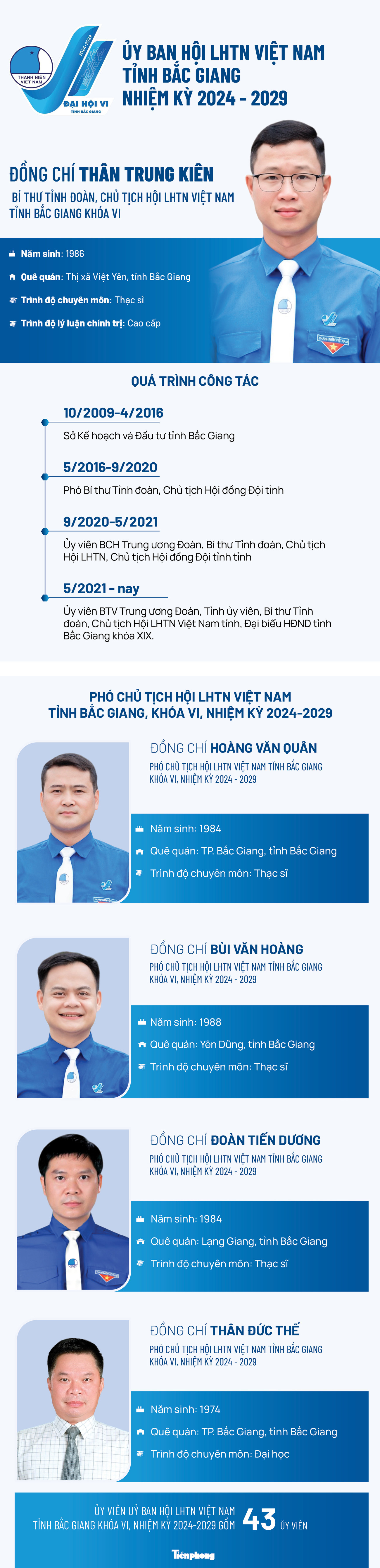 TPO - Sáng 3/8, Đại hội đại biểu Hội LHTN Việt Nam tỉnh Bắc Giang lần thứ VI, nhiệm kỳ 2024 - 2029 diễn ra phiên trọng thể. Đại hội hiệp thương cử trực tiếp anh Thân Trung Kiên làm Chủ tịch Hội LHTN Việt Nam tỉnh Bắc Giang khóa VI.