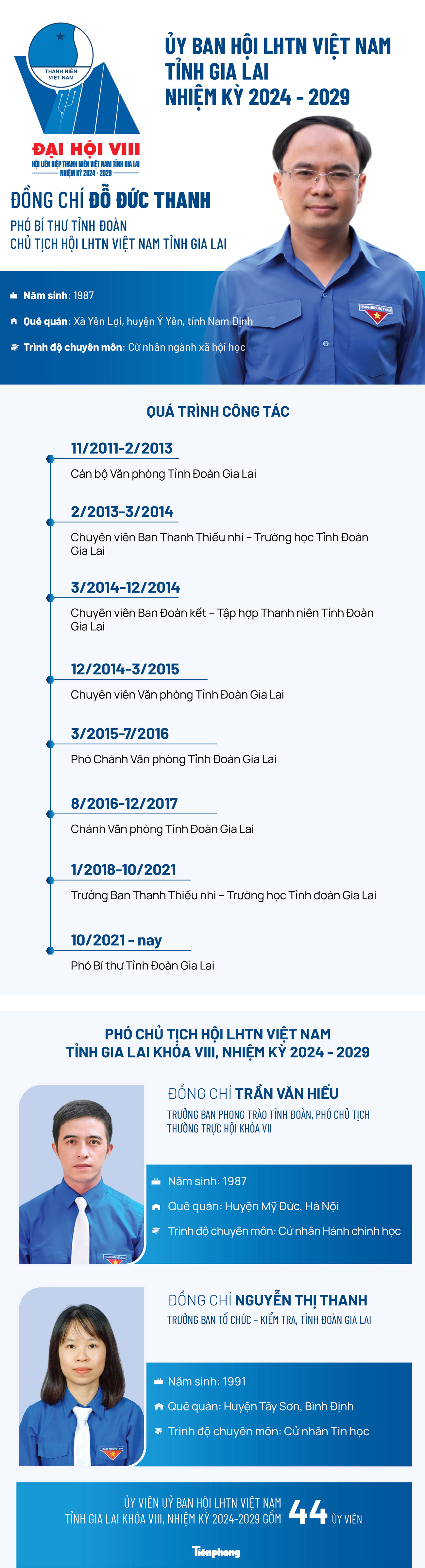 TPO - Đại hội Hội Liên hiệp Thanh niên Việt Nam tỉnh Gia Lai lần thứ VIII, nhiệm kỳ 2024 – 2029 diễn ra trong hai ngày 5-6/11. Anh Đỗ Đức Thanh - Phó Bí thư Tỉnh Đoàn được bầu làm Chủ tịch Hội LHTN Việt Nam tỉnh Gia Lai. Các Phó Chủ tịch Hội gồm các anh Trần Văn Hiếu, chị Nguyễn Thị Thanh.