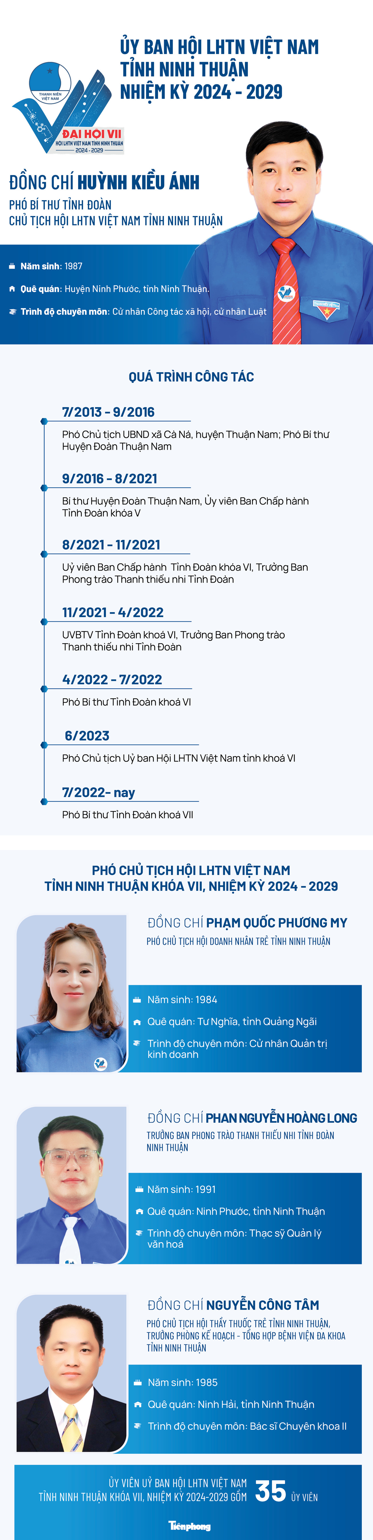 TPO - Tại phiên thứ nhất Đại hội đại biểu Hội LHTN Việt Nam tỉnh Ninh Thuận khóa VII, đồng chí Huỳnh Kiều Ánh - Phó Bí thư Tỉnh Đoàn Ninh Thuận, đã được hiệp thương giữ chức Chủ tịch Ủy ban Hội LHTN Việt Nam tỉnh Ninh Thuận, nhiệm kỳ 2024 - 2029.