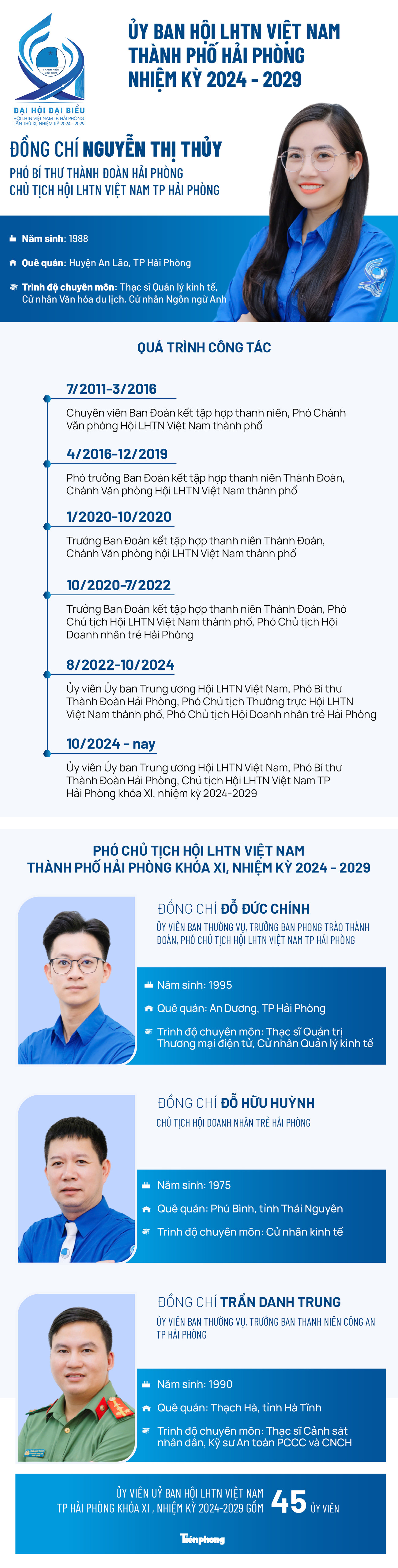 TPO - Chị Nguyễn Thị Thủy – Phó Bí thư Thành Đoàn Hải Phòng, Phó Chủ tịch thường trực Hội LHTN Việt Nam TP Hải Phòng khóa X được chọn cử làm Chủ tịch Hội LHTN Việt Nam thành phố khóa XI, nhiệm kỳ 2024-2029.