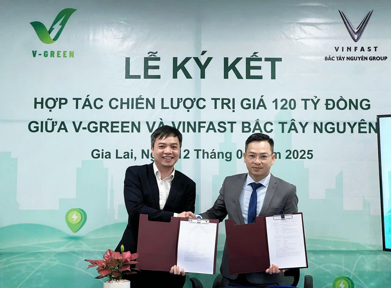 Miền Trung - Tây Nguyên hiện là một trong những khu vực có nhiều tiềm năng phát triển hạ tầng sạc, đồng thời tỉ lệ người dùng xe điện cũng đang trên đà tăng trưởng nhanh chóng. Thỏa thuận hợp tác chiến lược giữa V-Green và nhà phân phối VinFast Bắc Tây Nguyên không chỉ là bước khởi đầu cho các hoạt động đầu tư và phát triển dài hạn giữa hai bên, mà còn góp phần quan trọng hiện thực hóa cam kết mạnh mẽ của VinFast và các đối tác trong việc xây dựng một hệ sinh thái xe điện toàn diện, bền vững, hiện đại và thân thiện với môi trường tại Việt Nam.