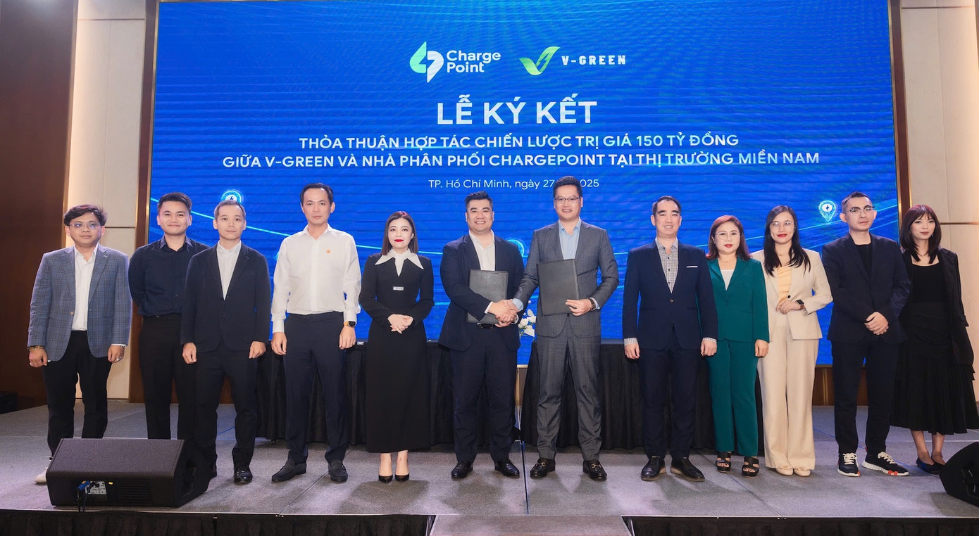 Ông Nguyễn Thế Duy - Giám đốc Điều hành ChargePoint cho biết: “ChargePoint rất vinh dự được đồng hành cùng V-GREEN và tin rằng sự hợp tác này có thể mở ra những cơ hội phát triển cũng như kinh doanh bứt phá, dài hạn. Tận dụng chuyên môn và nguồn lực trong các lĩnh vực nhượng quyền trạm sạc xe điện và xây dựng hạ tầng,chúng tôi sẽ thúc đẩy sự phát triển của hệ sinh thái trạm sạc đa dịch vụ, qua đógia tăng lợi nhuận cho những nhà đầu tư quan tâm đến lĩnh vực trọng điểm như xe điện, góp phần thúc đẩy xu hướng giao thông xanh tại Việt Nam.”
