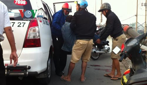 Người đàn ông được người dân chuyển sát vào lề đường và gọi báo lực lượng bảo vệ dân phố tới đưa lên taxi chuyển vào bệnh viện trong tình trạng mất nhiều máu.