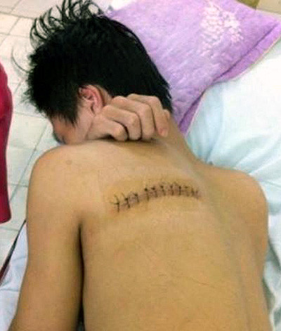 Theo gia đình bác Hoa, khi hành hung Khánh, các đối tượng mở cốp xe máy lấy 1 con dao nhọn và 1 con dao phay, chém vào lưng Khánh khiến Khánh ngã gục xuống. Thấy nạn nhân chảy nhiều máu, các đối tượng cất hung khí vào cốp xe và tẩu thoát nhanh chóng. Khánh sau đó được đưa đi cấp cứu tại bệnh viện E.