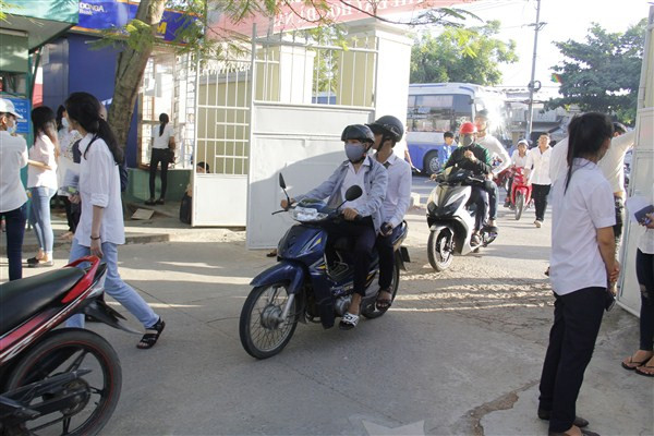 Hầu hết thí sinh nội thành đều tự chạy xe máy đi thi.