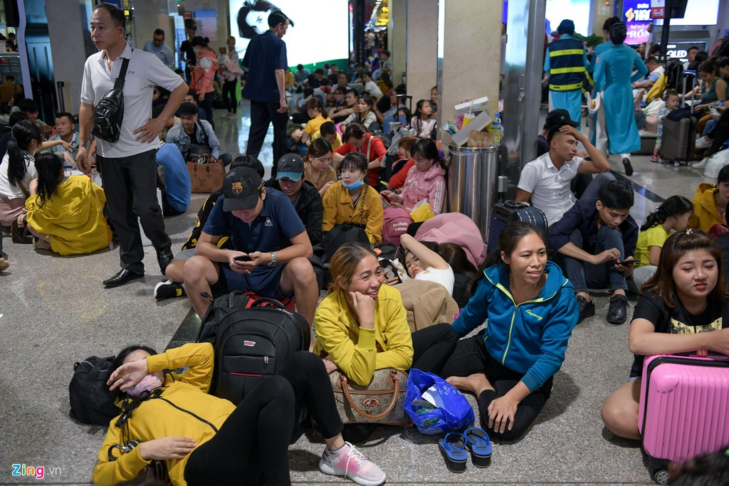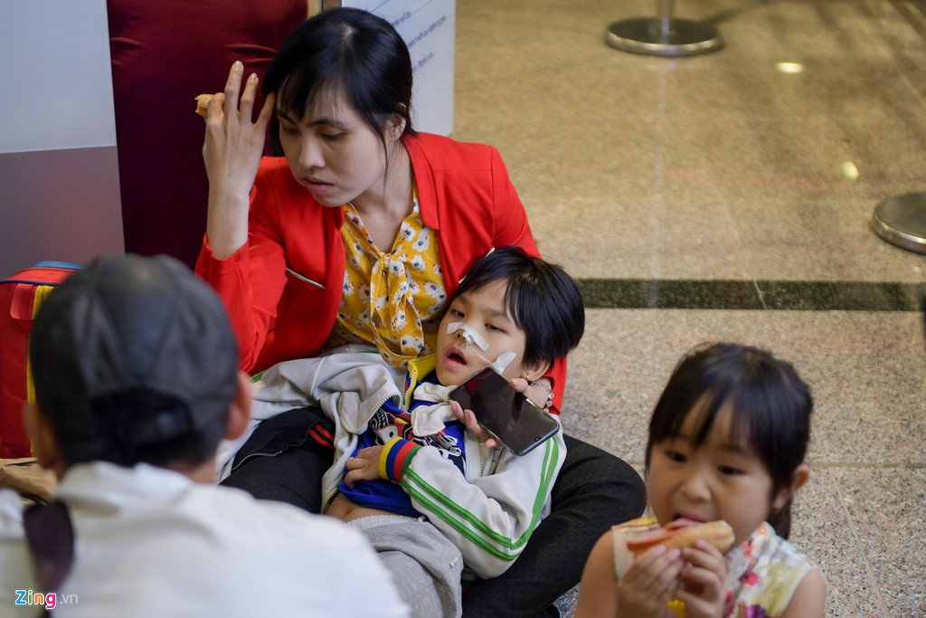“Gia đình tôi có mặt ở sân bay lúc 17h để đi chuyến 19h40 nhưng bị delay đến 21 h. Con đang sốt cũng không có cách nào khác đành phải chờ thôi”, người mẹ quê Thanh Hóa cho biết.