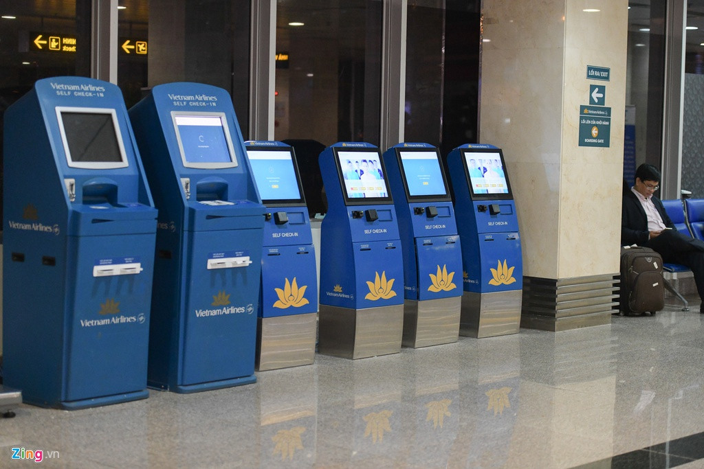 Đa số hành khách có hành lý ký gửi nên khu vực tự check-in ở các máy thưa thớt.