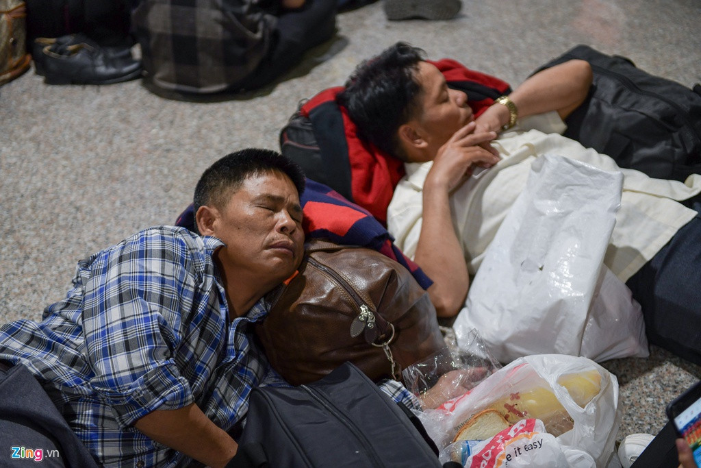 Việc các chuyến bay bị lùi giờ cùng tâm lý đi sớm phòng nhỡ chuyến nên nhiều người không tránh khỏi mệt mỏi.