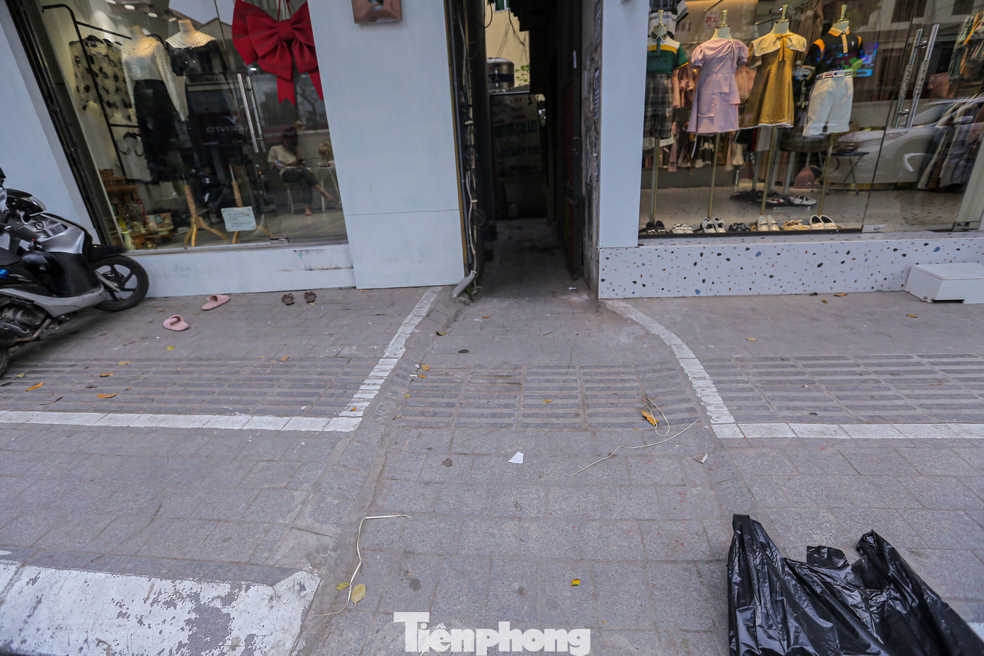 | Phần vỉa hè dành cho người đi bộ bị thu hẹp lại chỉ còn 25cm trên đường Thụy Khuê. |