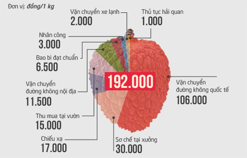 Trong khi vải Việt Nam đến cảng hàng không của Mỹ có tổng giá thành trên 8 USD một kg thì vải Florida, Mexico, Trung Quốc rẻ hơn 4-6 USD nhờ có lợi thế về khoảng cách cũng như việc vận chuyển rất thuận lợi.