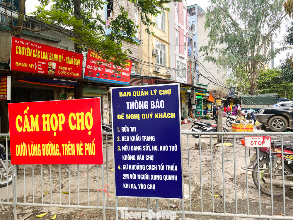 Ngày thứ 5 "cách ly toàn xã hội", nhưng khu chợ dân sinh ngõ 72 phố Dịch Vọng, Cầu Giấy vẫn tấp nập người bán buôn ngay sau tấm biển cấm họp chợ dưới lòng đường, hè phố.