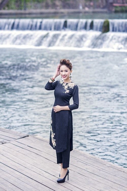 "Bà mẹ đơn thân" mặc áo dài mỏng manh, chịu lạnh để tạo dáng bên sông Đà Giang.