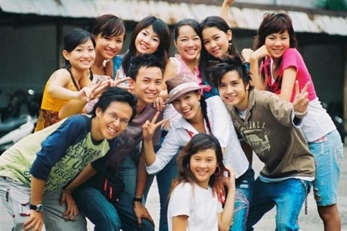 Vân Hugo (thứ hai bên trái hàng trong cùng) tiếp tục tạo dấu ấn trong phim truyền hình "Nhật ký Vàng Anh" mùa đầu tiên, phát sóng năm 2006.